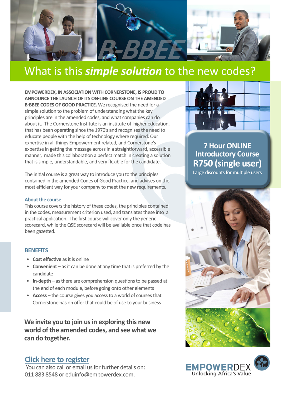 Notice of Clarification for the amended Codes of Good Practice as it has been gazetted and published today 05 May 2015 »
